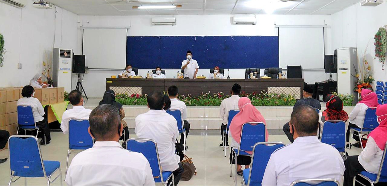Sergai,(Redaksiriau.com) - Sebagai upaya dalam memutus mata rantai pandemi Coronavirus Disease 2019 (Covid-19) yang hingga kini belum berakhir, Bupati Serdang Bedagai (Sergai) H. Darma Wijaya didampingi Ketua Tim Penggerak TP PKK Ny Hj Rosmaida Darma Wijaya melakukan aksi dengan memberikan bantuan Peralatan Protokol Kesehatan (Prokes) berupa masker, handsanitizer, sabun dan buku panduan penanggulangan Covid-19 yang disalurkan kepada para Kepala Sekolah dan Koordinator Cabang Dinas Pendidikan Kabupaten Sergai di Aula Dinas Pendidikan Kabupaten Sergai di Sei Rampah, Rabu (10/03/2021).