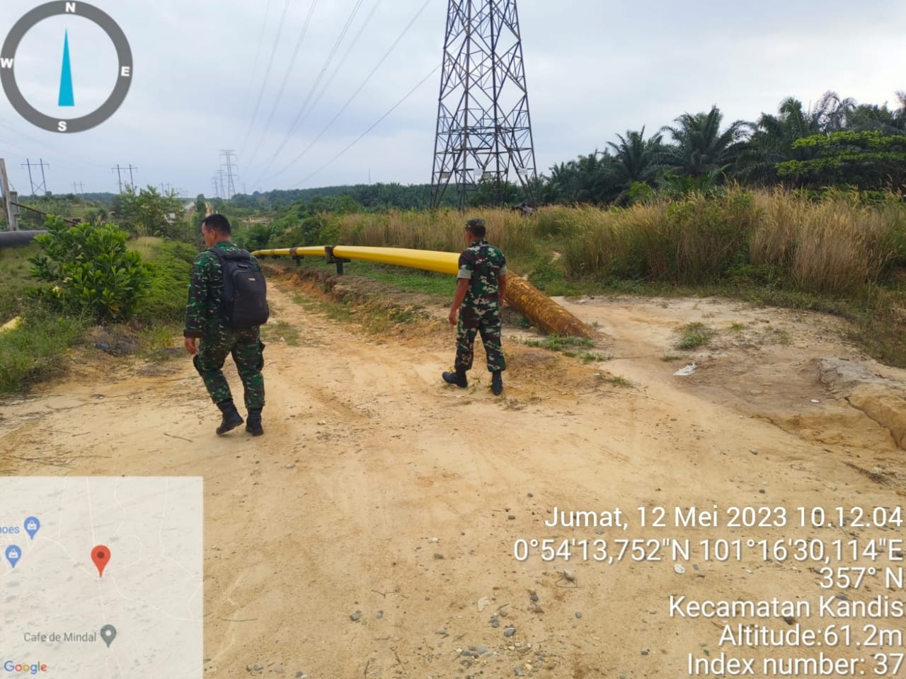 Babinsa Sertu Panji Santoso bersama Serda Edy Simanjuntak melaksanakan giat patroli di Line Pipa Mindal 5 area Kampung Bekalar dan patroli dijalan Caltex Area Kebun Palapa Kampung Bekalar.